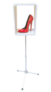 An attractive modern completely white decorated box is shown. The front is closed with a slider, the back is open. There is a grip hole at the top. This grip hole is worked in such a way that you can reach in, but not look in! You can reach in and open the slider and see how your hand moves in the box later. The audience is told that this box conveys paradoxical terms. Reality becomes appearance and vice versa. This is the first time that this box gets a story. Something for the story telling magicians.